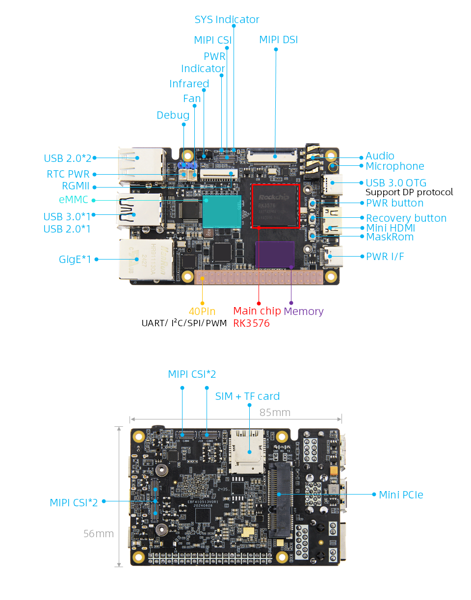 Laguntza nagusiei dagokienez, RockChip RK3588, RK3576 eta RK3568 plataformei dagokienez, gidari gehienen laguntza nagusia izan da eta kode irekiko komunitatea laguntzen eta mantentzen jarraitzen dute eta garatzaileekin lan egiten dute software ekosistema hobea sortzeko.